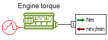 The engine is a torque/rotational speed source and can be modeled using the following libraries and components: