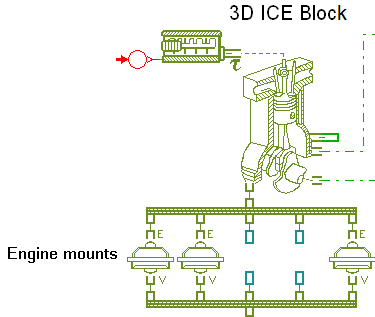 The engine is a 3D dynamic mass with 6 degrees of freedom and can be modeled using: