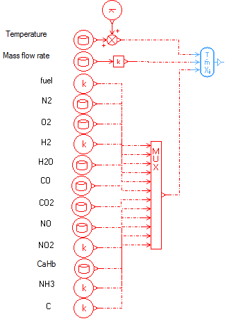 The engine is an exhaust gases generator and can be modeled using the following libraries and components: