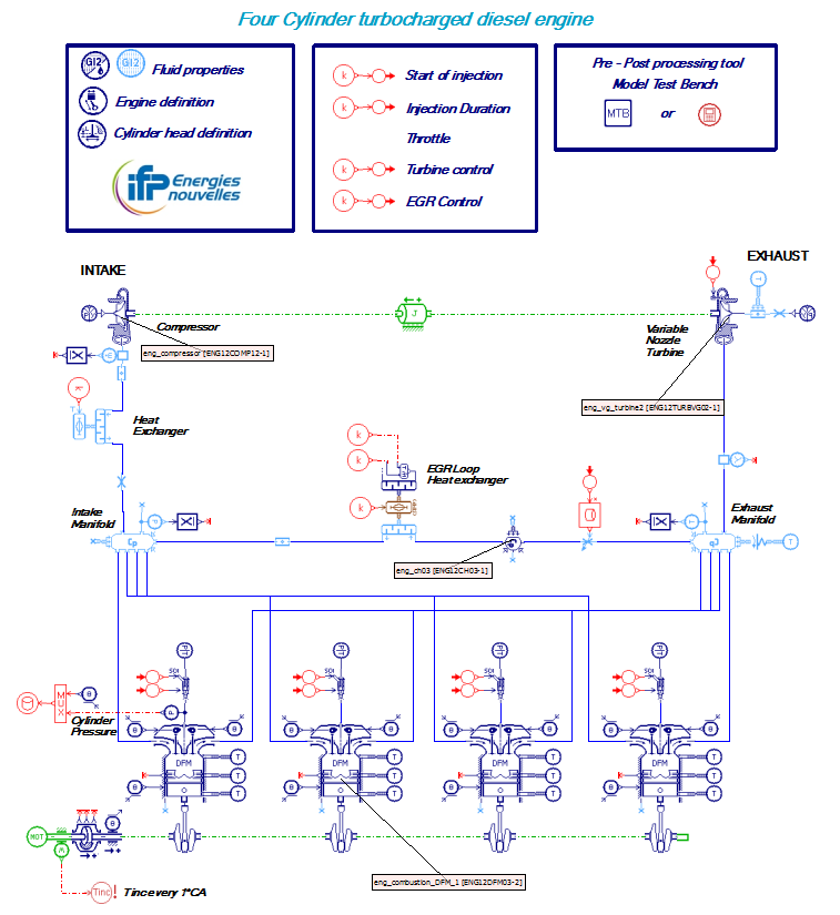 - Or the IFP-Engine library components (mean value engine model or high frequency engine model)